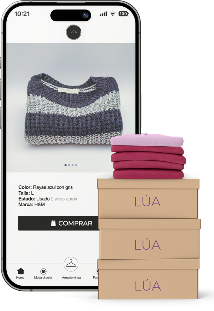 La app de Lúa, te indica cuánta ropa tienes en tu armario virtual, ayudando en algunos casos, a evitar el acumulamiento de ropa y además te mantiene en constante información, sobre cómo la industria textil, impacta en el planeta y de esta forma, tomar de manera informada tu decisión de compra. La app Lúa, tiene como objetivo principal, formar una comunidad consciente que guste de la moda y la tecnología. Además Lúa, se hace presente como nexo de diferentes fundaciones, dónde los usuarios de la app, podrán donar ropa a quiénes lo necesitan, continuando así, circulando prendas, dentro de la comunidad.